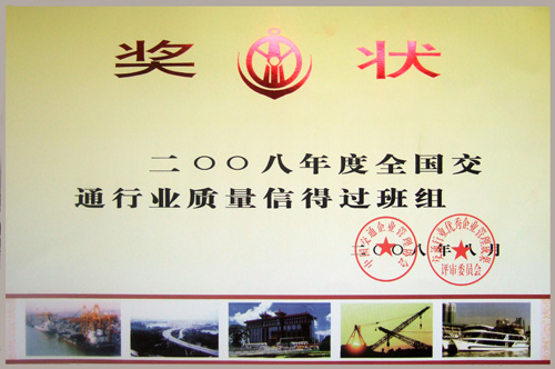 2008年度全國(guó)交通行業(yè)質(zhì)量信得過(guò)班組獎(jiǎng)狀