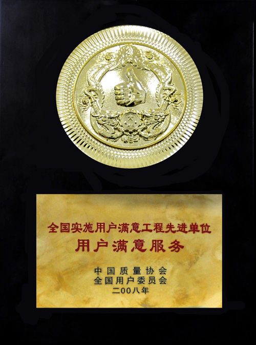 全國(guó)實(shí)施用戶滿意工程先進(jìn)單位用戶滿意服務(wù)獎(jiǎng)